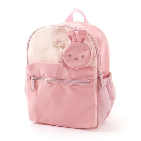 ピンク:刺しゅうのリボンにクルンと長いまつ毛にハートのお鼻のウサギのコインケース