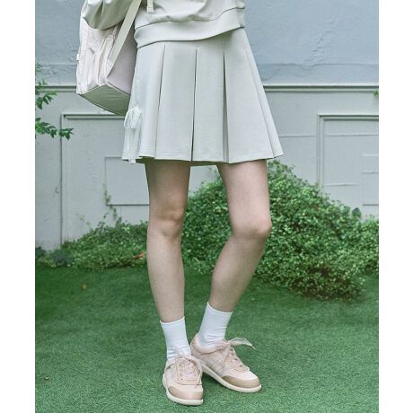 スウェット素材をプリーツスカートに用いて、新鮮なスポーティーさを取り入れたデザイン◎