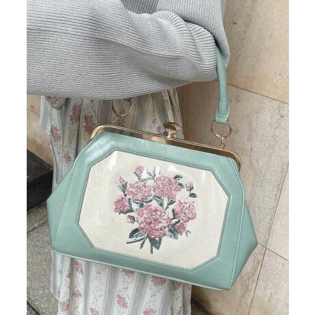 フロントのブーケ刺繍がヴィンテージなムード満点のがま口バッグ。