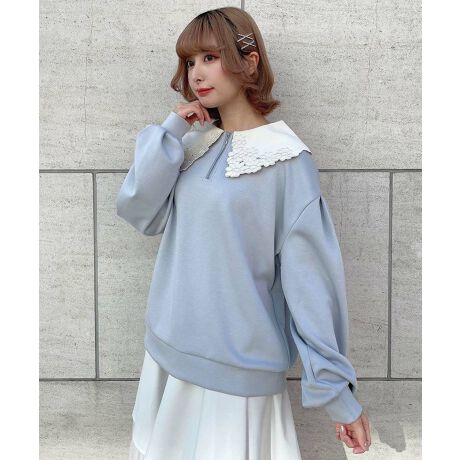 【洗える】マーガレット 衿 ハーフZIP スウェット