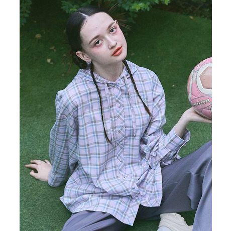 フード付きのビッグシルエットがトレンドライクな印象のチェックシャツ。