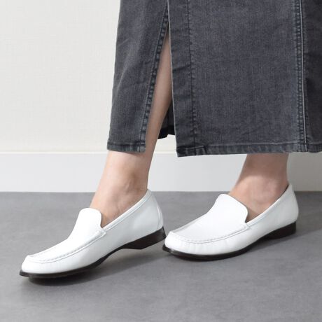 シンプルなデザインのモカシューズは安定感のあるローヒールのため一日中履いていても疲れづらく、デイリーに履いていただけるうれしい設計になっています。