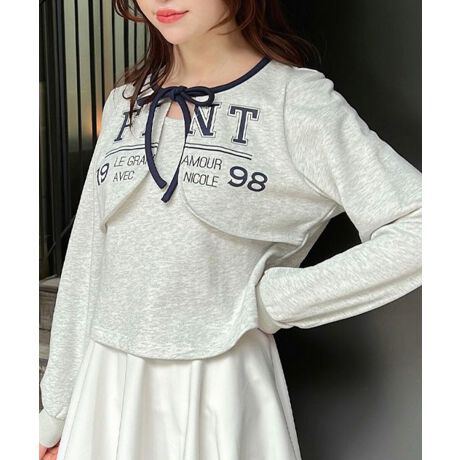 フロントの配色リボンと、ちょっぴり開いた胸元の開きでガーリーさもプラス