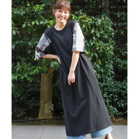 身頃部分は柔らかなカットソー生地で、袖は薄手のさらりとハリのある素材を使用しています。