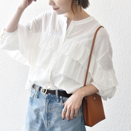 2段のティアードフリルが入ったガーリーなブラウス。