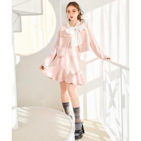 セットアップで着こなせば、統一感のあるコーディネートが完成するフレアミニスカート【Design】・重さを感じさせない春のツイードアイテム。・さり気なくラメを仕込み、春にぴったりな軽やかな雰囲気を演出してくれます。・甘すぎない裾フレアデザインに、艷やなパールボタンを添えて上品な印象に。・同素材を使用したラメツイードノーカラージャケット【品番:20082516100036】と、セットアップで着こなすのがおすすめ♪・ウエストを細見えしつつお尻周りをカバー◎・左ファスナー仕様。・ウエストバックはレースアップ&ゴム仕様で、お好みに合わせてご調整いただけます。【Fabic】・表面感のあるツイード生地を使用。・程よいハリ感のある裏地付き。・ホワイト、イエロー、ピンクの3色展開となります。【Care】ドライクリーニング