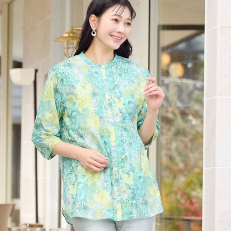 ◆リバティプリントを贅沢に使用した心躍る華やぎシャツ◆