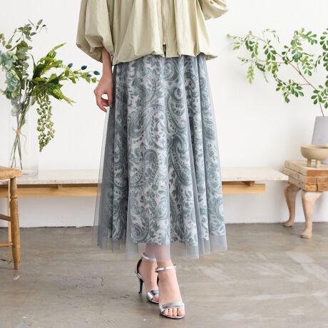 ■ペイズリープリントが涼し気な、チュール重ねスカートが春夏コーデの主役♪■