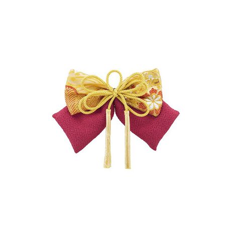 金襴緞子の帯地や中綿の入った縮緬の生地で、中央を房紐で飾った、ふっくらとしたリボンが仕立てられています。