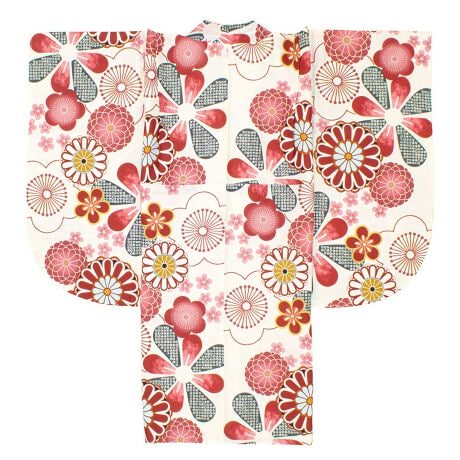 ※着物の柄部分は大きな生地を使用して作られておりますので、色や柄の出方、模様の配置等が画像と異なる場合がございます。