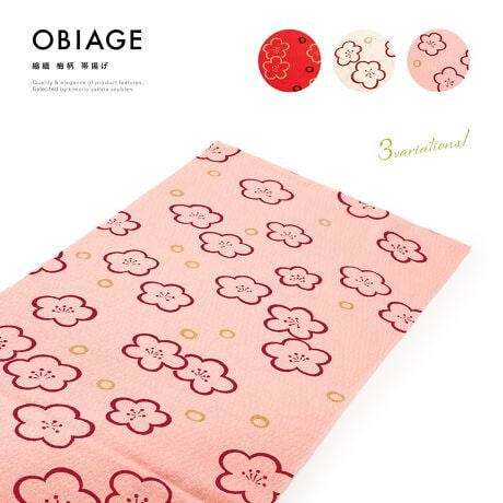 縮緬(ちりめん)地に梅の花や丸がデザインされています。