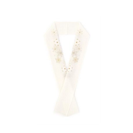 涼しげな絽の生地に、煌めく金糸や銀糸で様々な形の雪の結晶が刺繍されています。
