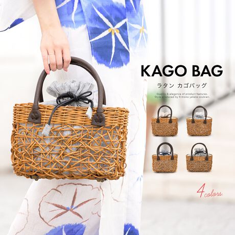 こちらのかごバッグで、暖かい季節の着物スタイルをお楽しみください。
