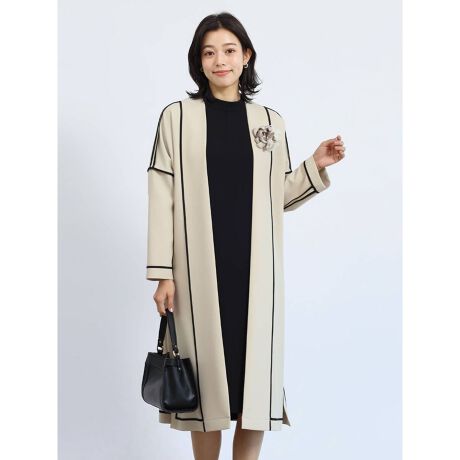 胸元にコサージュやブローチを付けることでオケージョンに対応したきちんと感も演出可能。