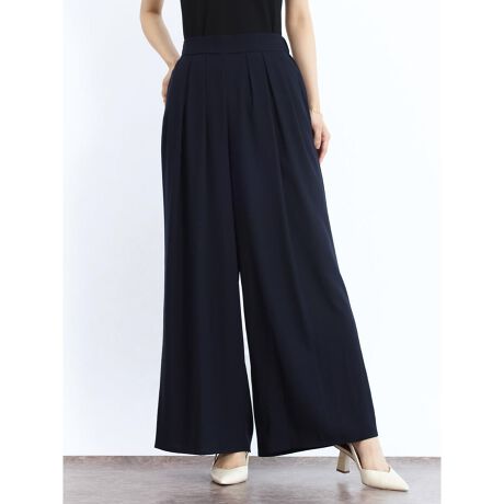 ウエストにタックを3本とり、たっぷりとした分量感でこなれ感漂うワイドパンツ。