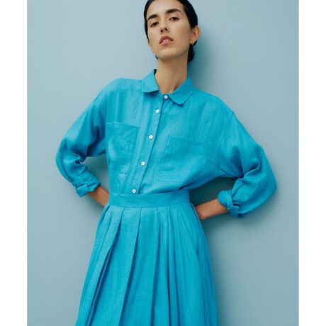 きちんと感は残しつつもややゆったりしたサイズ感で、羽織りとしても使えます。昨年までのラミー素材から、もう少し厚さのあるリネン素材に変更しています。
