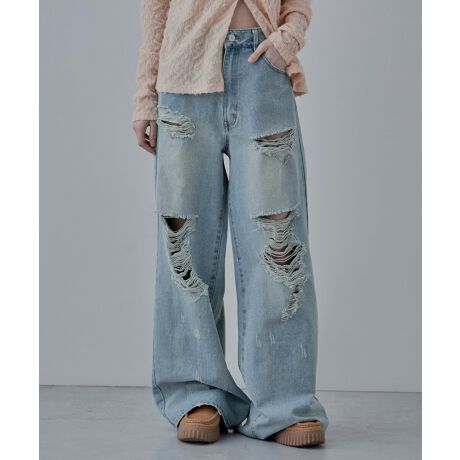 ワイドシルエットクラッシュデニム