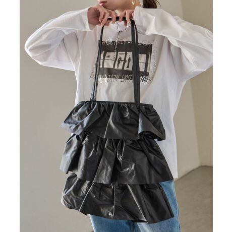Fashion Letter ファッションレター 大ぶりフリルとフェイクレザーの質感が可愛いけど大人っぽい。