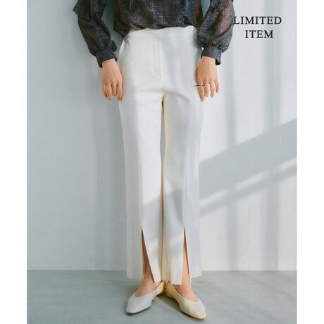 スリットのさり気ない肌見せでこなれた印象のセミフレアパンツ