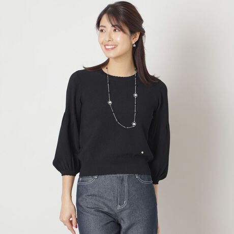 かのこ編の地柄とタックで袖にボリューム感を持たせたシンプルながら一枚着でも着ていただけるニットです。