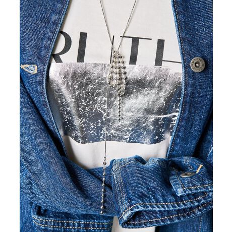シンプルながらも存在感のあるデザインネックレス。リボン風に仕上げたボールチェーントップがトレンド感あるひと品です。スライドボールで長さ調節出来、ラリエット調のY字にもアレンジ可能。付けるだけで華やかさをプラスしてくれる、カジュアルスタイルにも合わせやすいおすすめのアイテムです。※モデル着用画像は、光の当たり具合で色味が違って見える場合がございます。※お使いのモニター環境によって商品の色味が違って見える場合がございます。