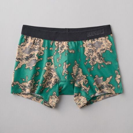 [型番:BWG183A]綿の風合い プラス ストレッチ綿の柔らかな肌触りと、ストレッチ性のある素材を使用。だから動きやすくて、快適フィット。〈トレジャーマップ柄〉さあ このボクサーパンツをはいて、冒険へ と思わず言ってしまいそうなヴィンテージマップがモチーフのデザイン。