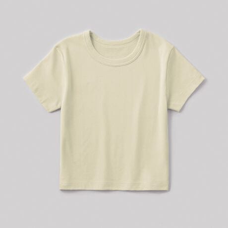 糸の撚りをほぐし、ワタの繊維に戻すことで柔らかさを実現しました。柔らかいだけではなく、しなやかに伸びてカラダにやさしくフィットします。さらに、洗濯タグをなくし、肌への刺激も軽減しました。