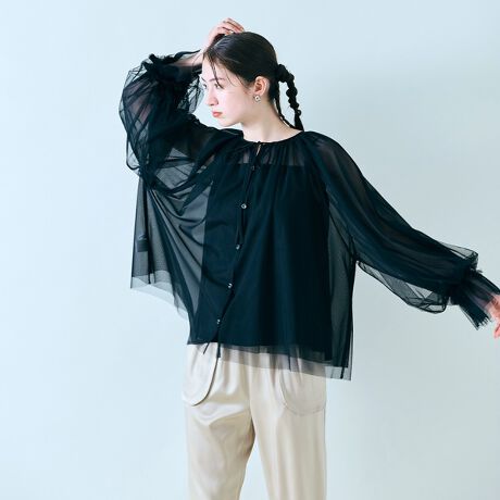 ・柔らかく落ち感のあるチュールブラウス。