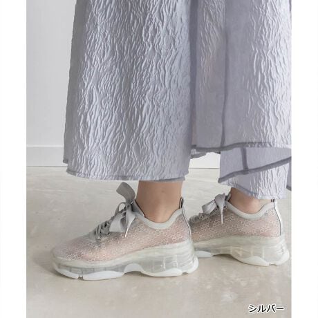 ビジューパーツやシューレースのサテン素材など、エレガントな要素をプラスした上品な一足です。