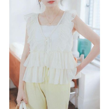たっぷりと施されたギャザーが特徴で、体型をしっかりカバーしてくれるチュールジレベスト。軽やかなチュール素材が、キャミソールの上にさらっと羽織るだけで、女性らしさを引き立てます。デニムと合わせるとカジュアルながらもフェミニンな雰囲気に。さらに、Iラインのワンピースの上に着ると、こなれ感がアップし、より洗練された印象に◎