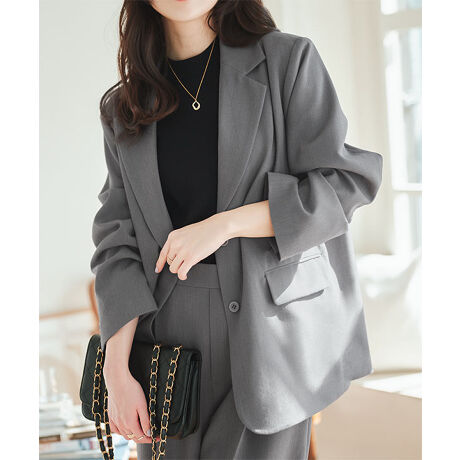 シワになりにくい生地で仕立てたオーバーサイズシルエットのテーラージャケット。デイリーからオフィスカジュアルまで幅広いシーンで活躍し、大人の抜け感を演出します。ビッグシルエットで中のトップスもごわつかないのもポイント◎【M4162】ワイドパンツと同生地なので、セットアップ着用が可能です。