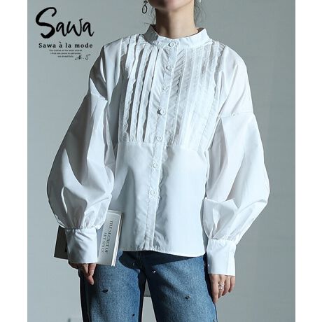 【トップス】 シャツ ブラウス プリーツ 長袖 ボリューム袖 プリーテッドブザム 白 春 秋 冬