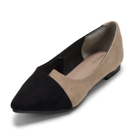 ヒールなしでも美脚に見えるポインテッドトゥパンプス。