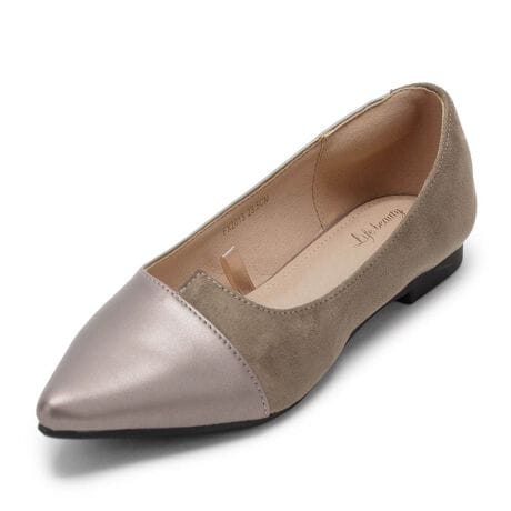 ヒールなしでも美脚に見えるポインテッドトゥパンプス。