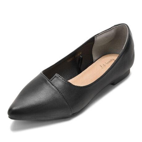 ヒールなしでも美脚に見えるポインテッドトゥパンプス。