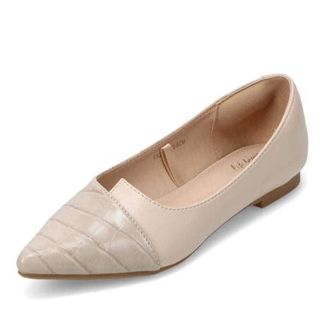 ヒールなしでも美脚に見えるポインテッドトゥパンプス。