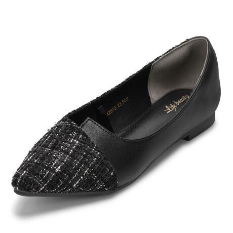 ヒールなしでも美脚に見えるポインテッドトゥパンプス。