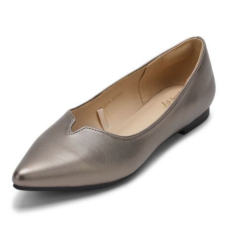 ヒールなしでも美脚に見えるポインテッドトゥパンプス。