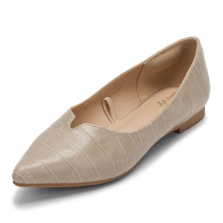 ヒールなしでも美脚に見えるポインテッドトゥパンプス。
