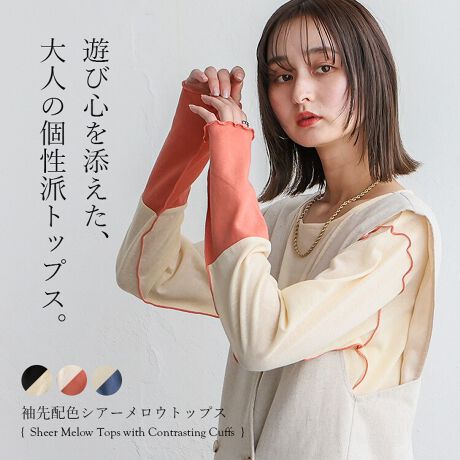 袖先配色シアーメロウトップス【aroco/アロコ】