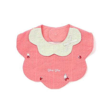 グリーンの襟はヘタをイメージしていて、スタイ全体が大きなイチゴみたいになっているのがポイントです。