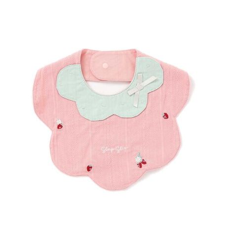 グリーンの襟はヘタをイメージしていて、スタイ全体が大きなイチゴみたいになっているのがポイントです。