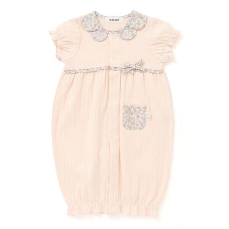 花びらを並べたような襟がキュートな半袖の2wayロンパース。
