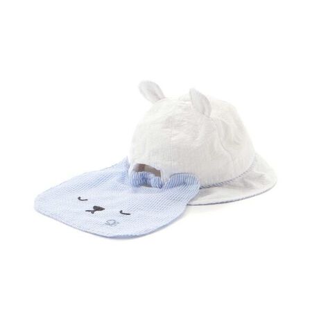 クマさんのお顔モチーフの日よけがとってもかわいいハット。