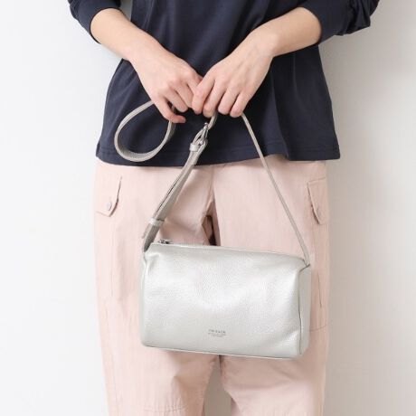 ショルダーで持つと視点が上にあがるのでコーディネートをすっきり見せます。