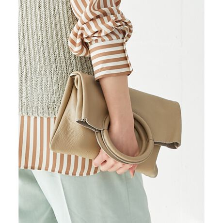 柔らかいレザーの質感に、まるいハンドルがアクセント。