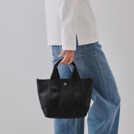 ・合皮素材とグログランテープを合わせた異素材使いのミドルサイズバッグ