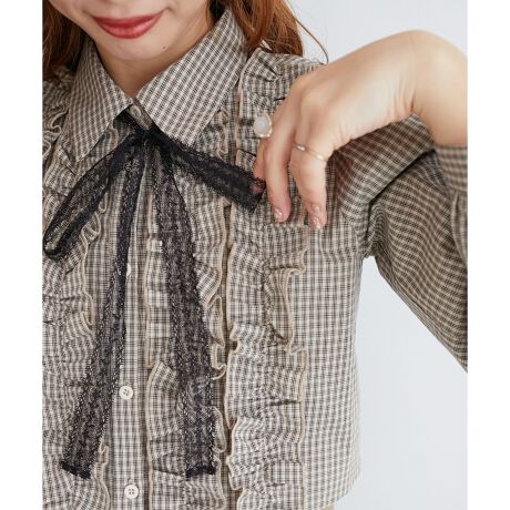 フロントにたっぷりと施したフリルがドラマティックな主役級ブラウス。