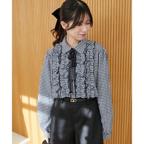 フロントにたっぷりと施したフリルがドラマティックな主役級ブラウス。