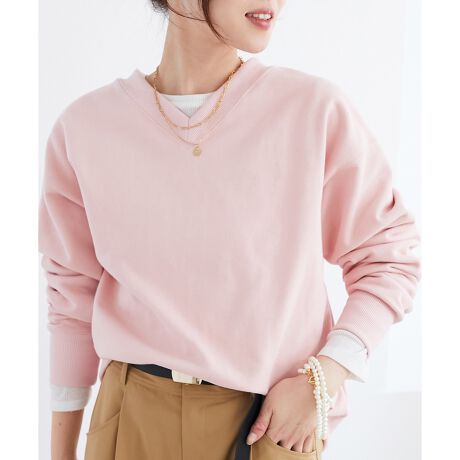程よく腰にかかる着丈と、ワイドなシルエットでパンツにもスカートにも相性の良いスウェットです。